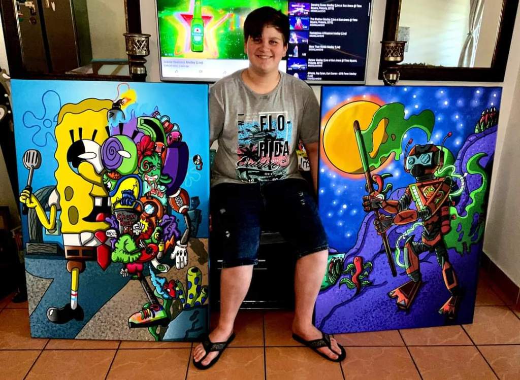 💜💜💜Unieke, soos geen ander kunswerke gedoen deur hierdie 13(more 14😁) jarige jong man . Claydens Designs is ‘n trotse Autistiese seun wat nie kan lees of skryf, & leef homself uit in sy kuns.💙Hy ontwerp meeste van sy kuns op sy iPad & dan druk ons dit op Angelo cotton Canvas of plakate…’lifespan’ 60-200 jaar gewaarborg dat die kleur nie sal verdof 🤩